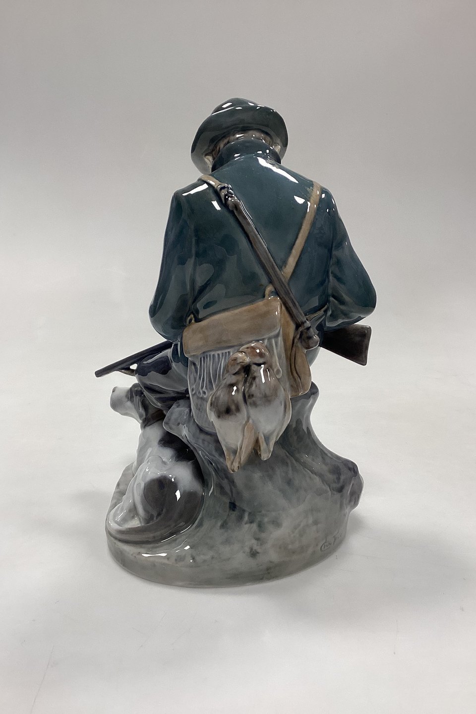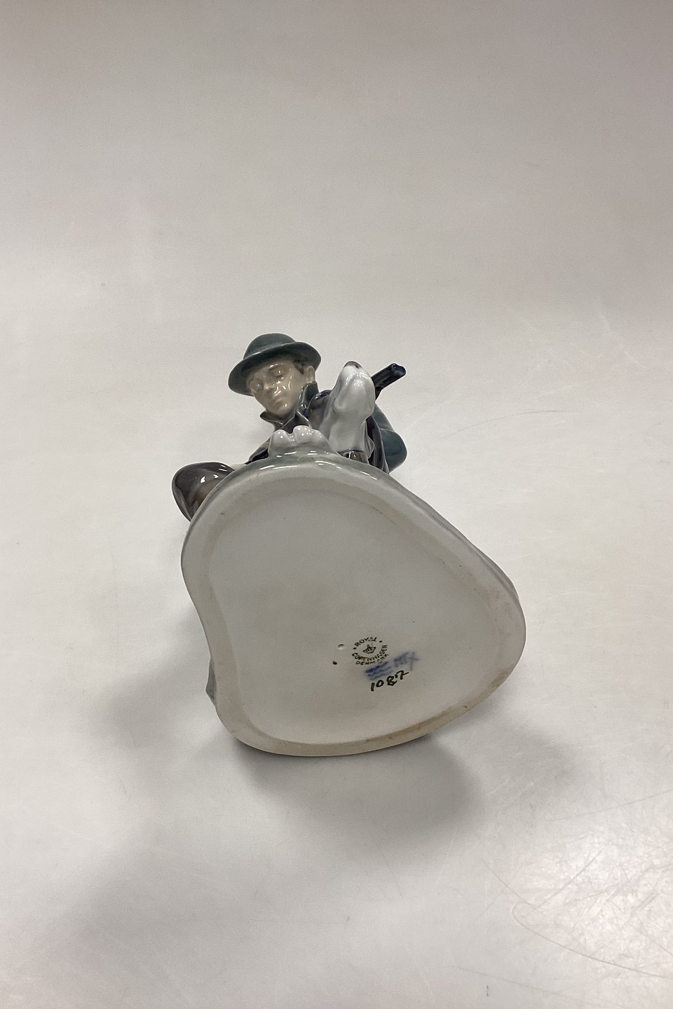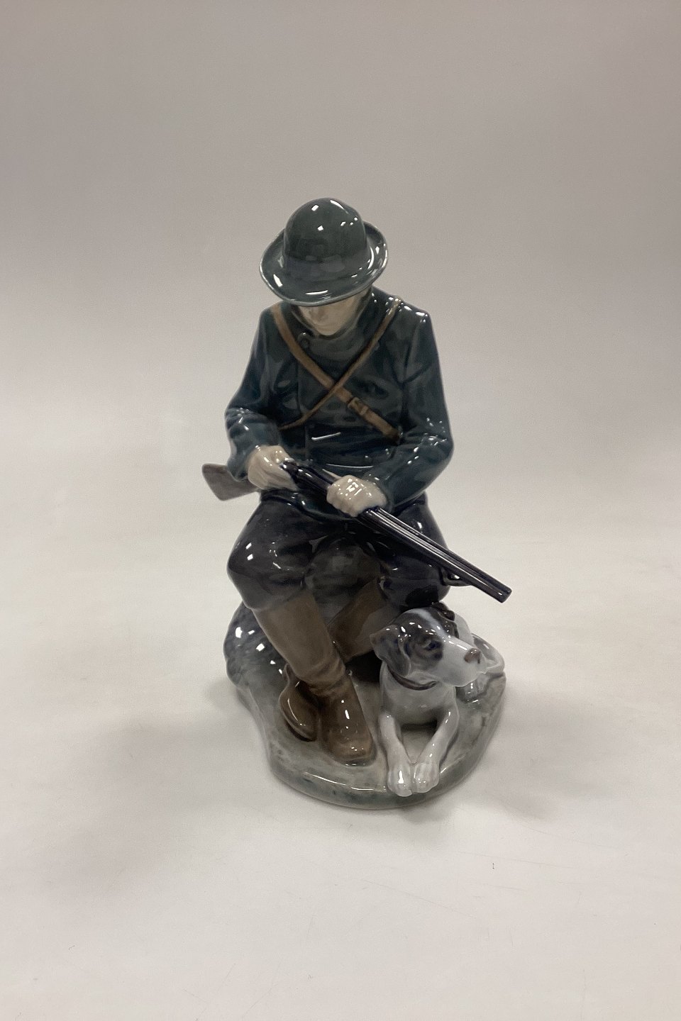 Royal Copenhagen Figurine - Hunter with Dog No. 1087. Designed by Christian Thomsen. Measures 20 cm x 10 cm / 7.87 in. x 3.93 in.