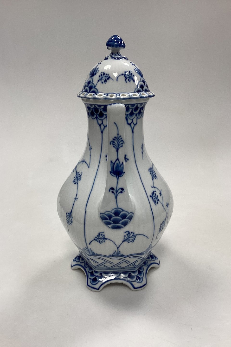 Royal Copenhagen Blue Fluted Full Lace Hexagonal Coffee Pitcher No. 128 / Lid No. 127. Measures 29 cm / 11.41 in. 1st Quality.