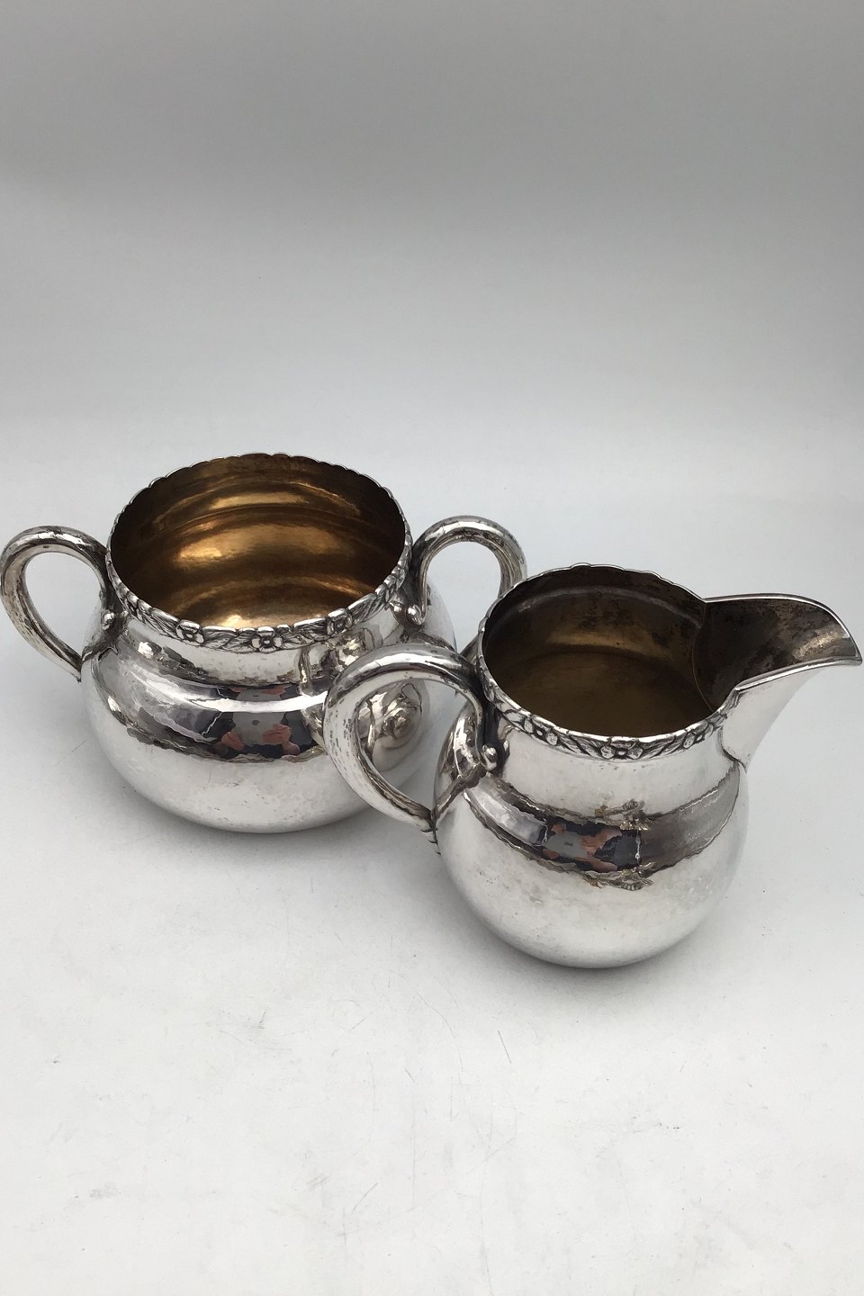 Evald Nielsen Silver Creamer & Sugar Bowl (1927+1928) Measures H 8+9 cm (3.15 inch +3.54 inch) Combined Weight 380 gr (13.4 oz)