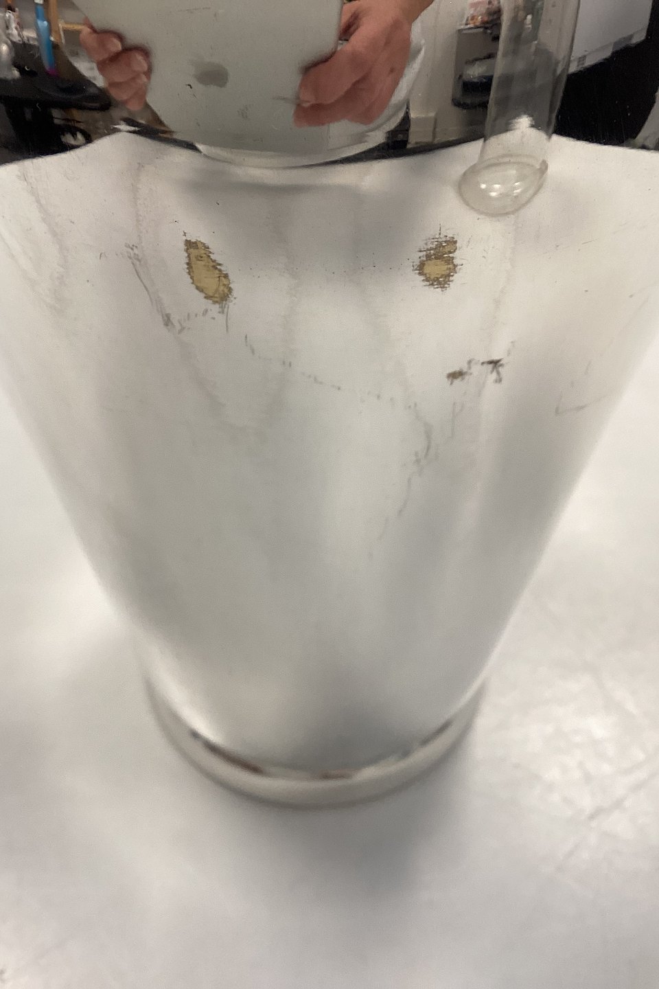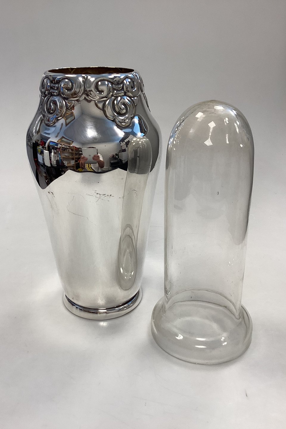 Art Nouveau / Deco Silver Plated Vase with glass insert. Danish produced brand Eneret Astral. Clear signs of wear on one side, see photos.