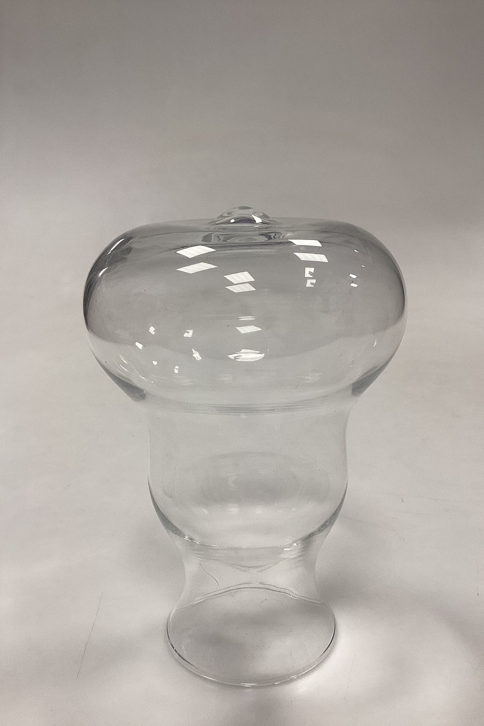 Holmegaard/Royal Copenhagen Ole Carafe with lid and tilting effect. Designed by Ole Jensen around 2000. Signature in the lid. This can be used to stabilize the carafe, see photo.