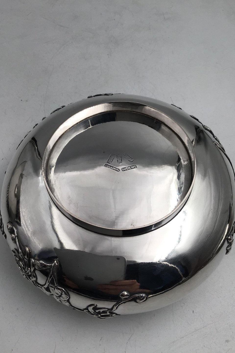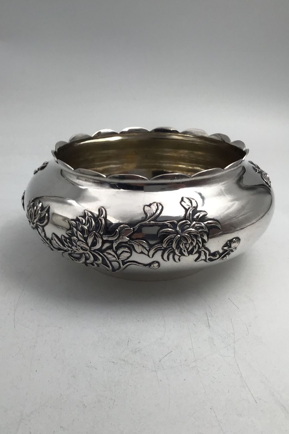 Antique Chinese Sterling Silver Bowl (Luen Wo, Shanghai) Chrysantemum floral decor