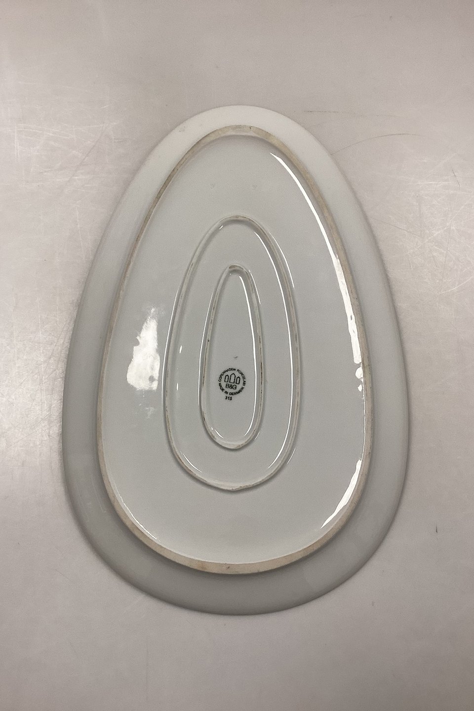 Bing and Grondahl Ballerina, Gold Three-Sided Serving Dish No. 315. Measures 40 cm x 26.5 cm / 15.75 in. x 10.43 in.