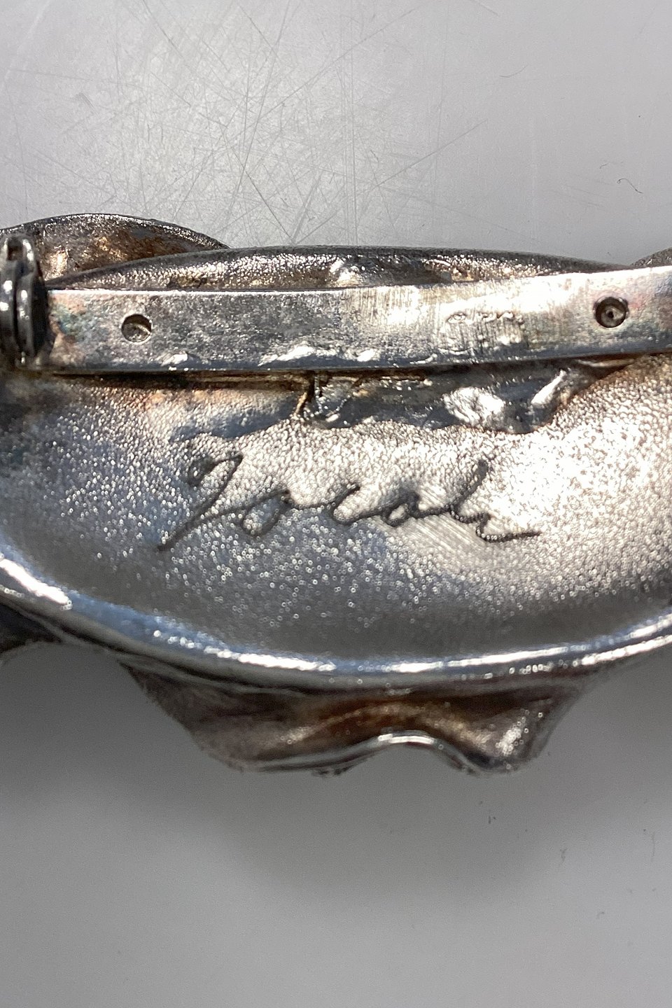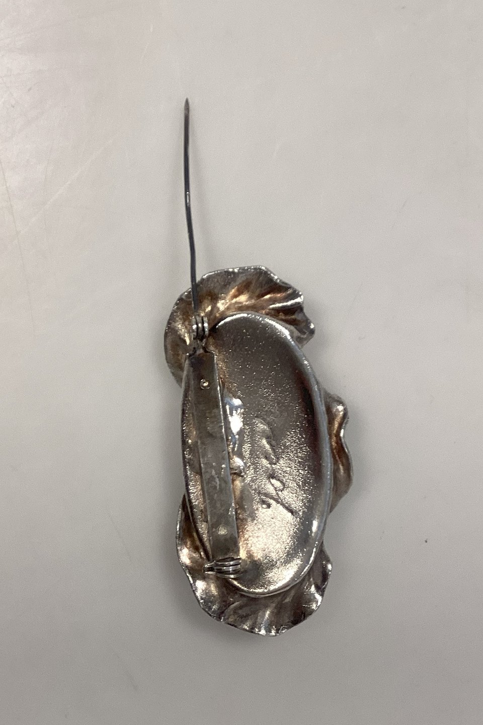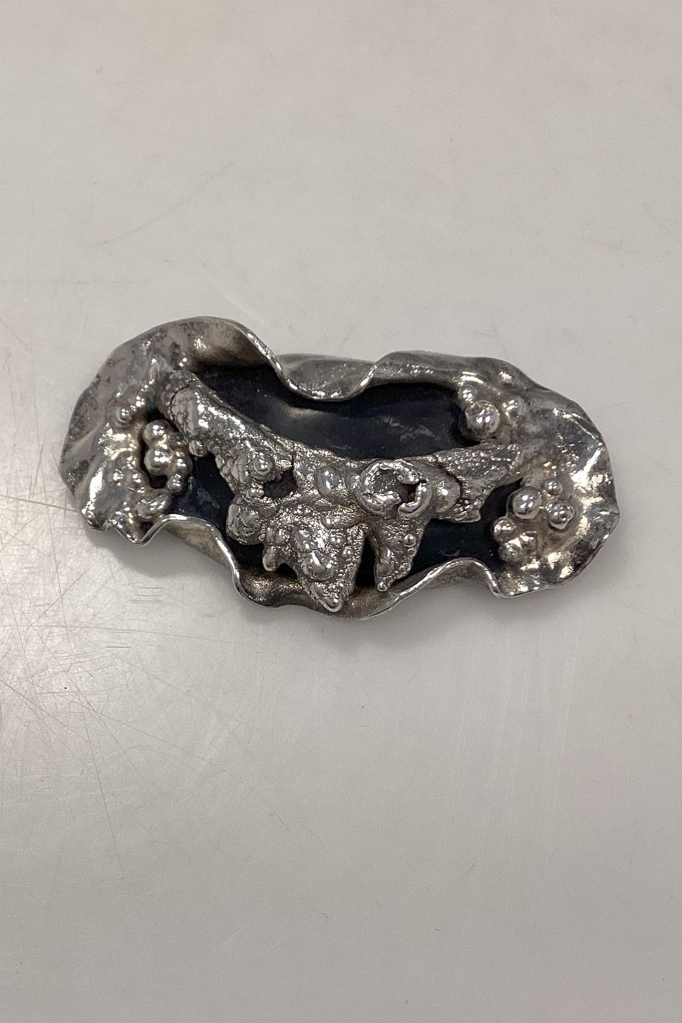 Ornamented Jacob Hull Brooch in Silver Plated Metal with Black Stone