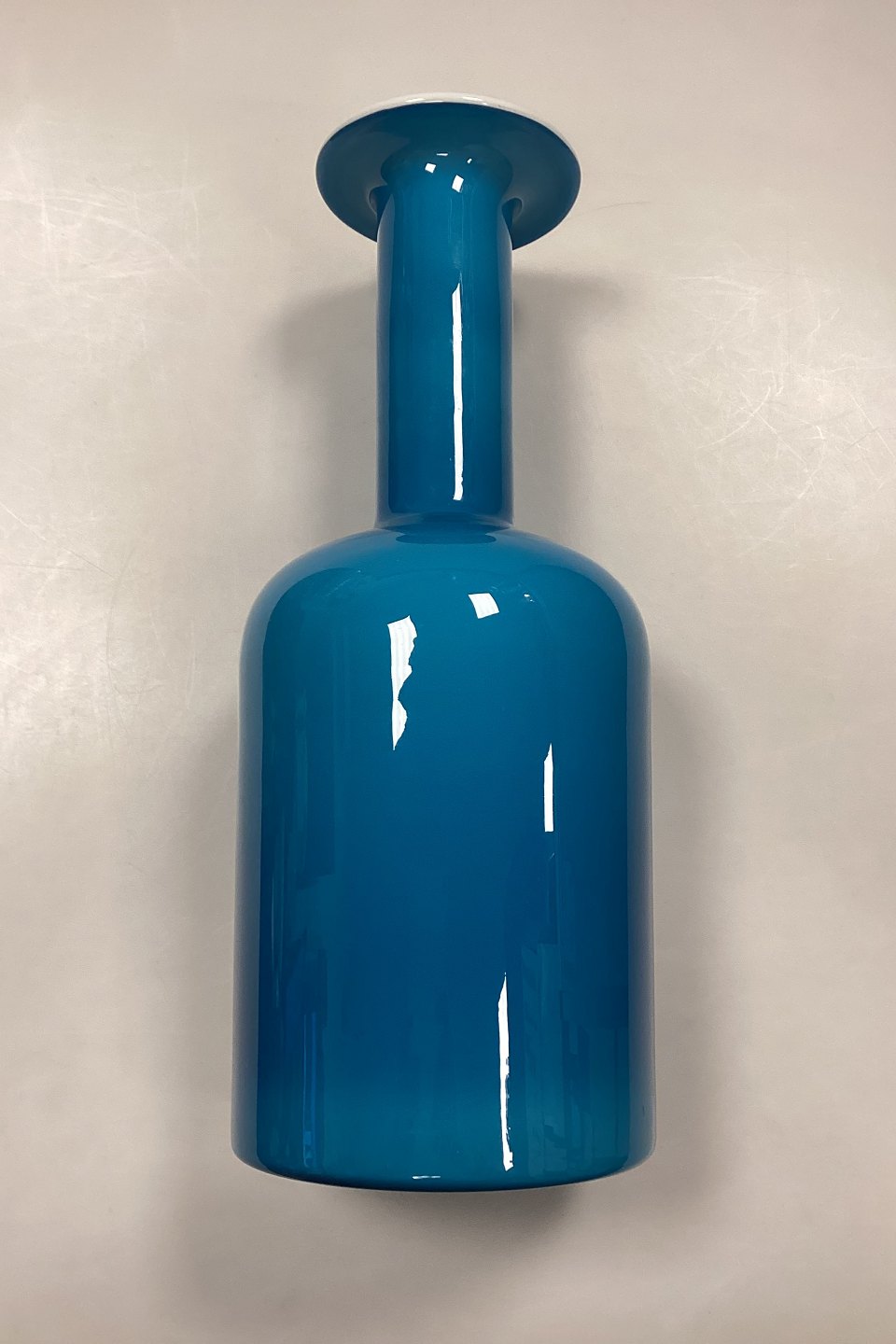 Holmegaard Art Glass Vase by Otto Brauer in turquoise and opal white inside. Marked as 2nd Quality, as there is an air bubble, see photo.