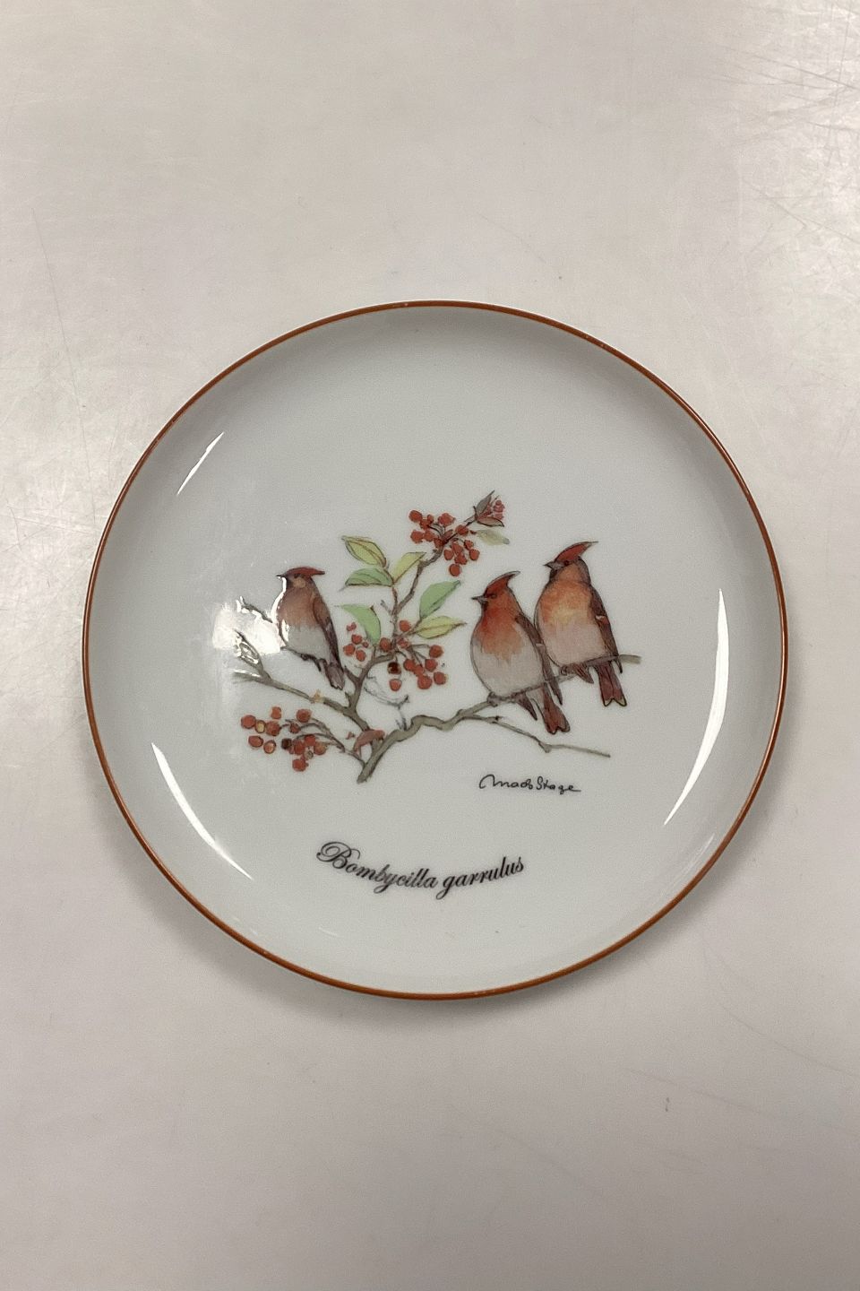 Mads Stage Annual Plate - Bohemian Waxwing 2011. Latin: Bombycilla garrulus. Manufacturer: Seltmann Weiden.