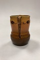 P. Ipsen's Widow Vase No. 412. Stoneware with yellow and brown glaze, with embossed flowers on the edge.