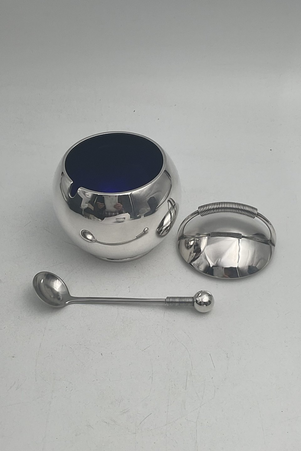 Hingelberg Sterling Silver Mustard Pot with lid and spoon by Svend Weihrauch
