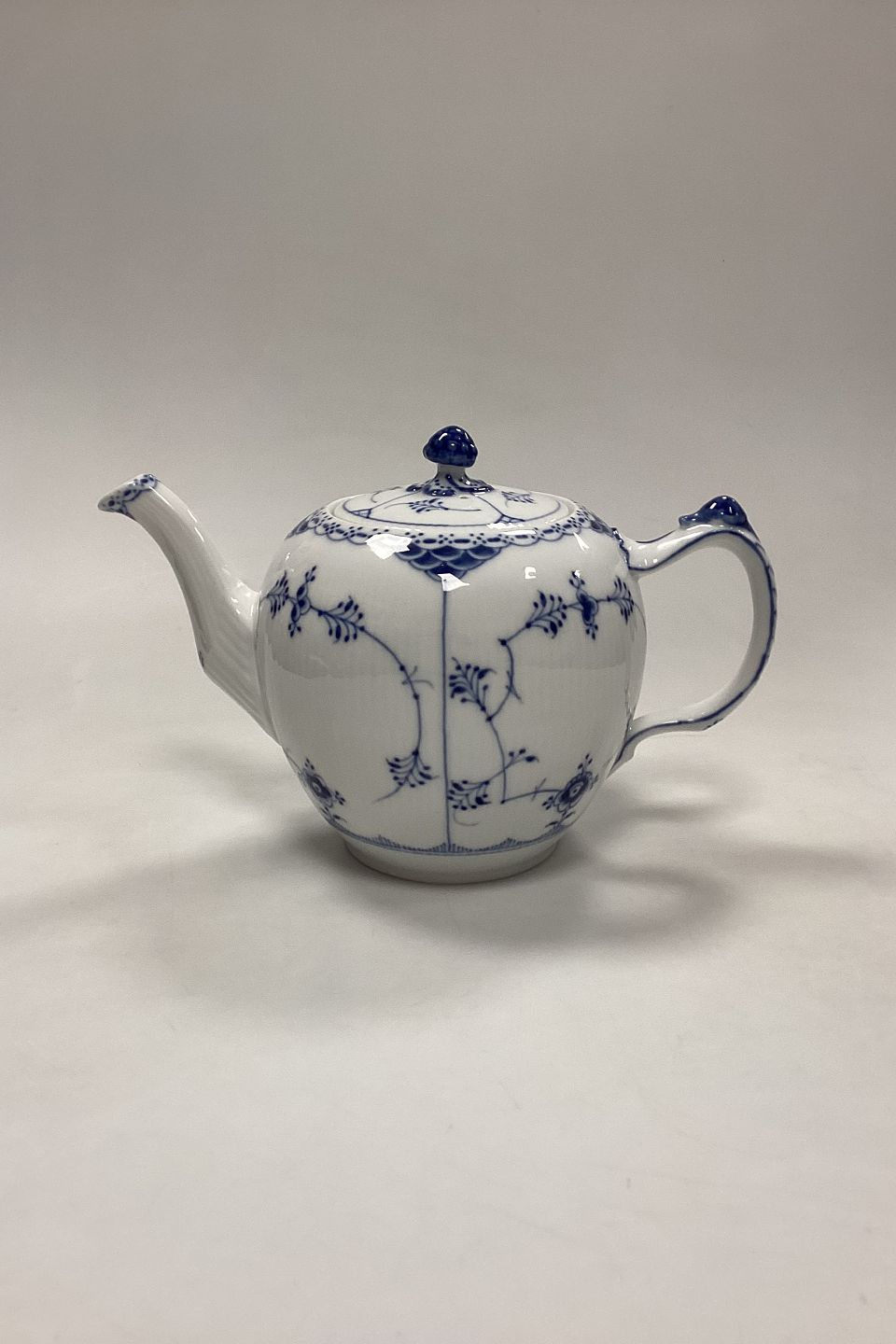 Royal Copenhagen Blue Fluted Half Lace Teapot, large No. 612. Holds 1.5 Liter.