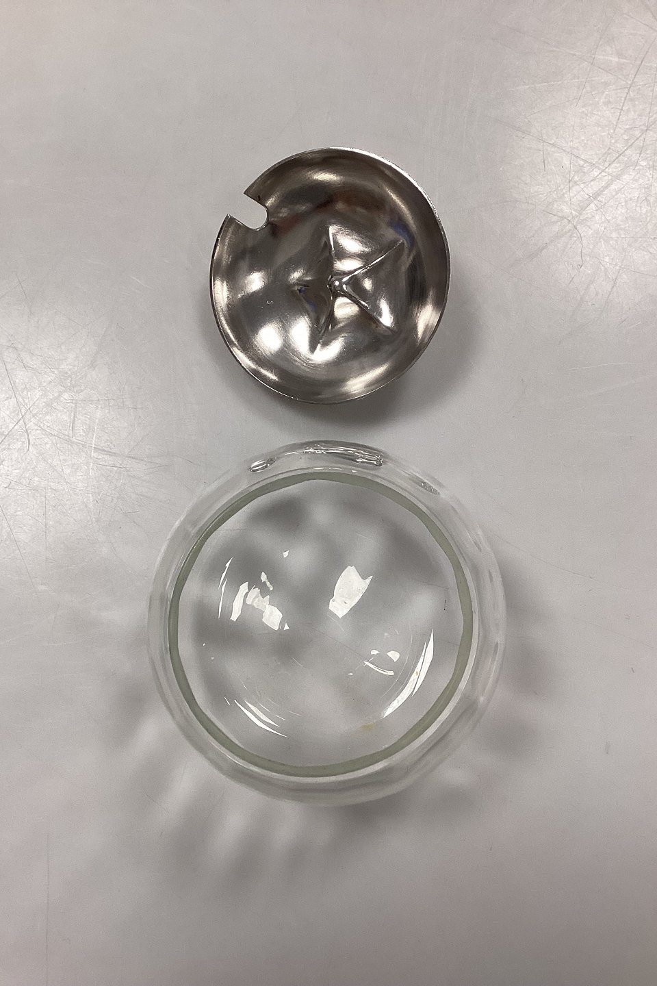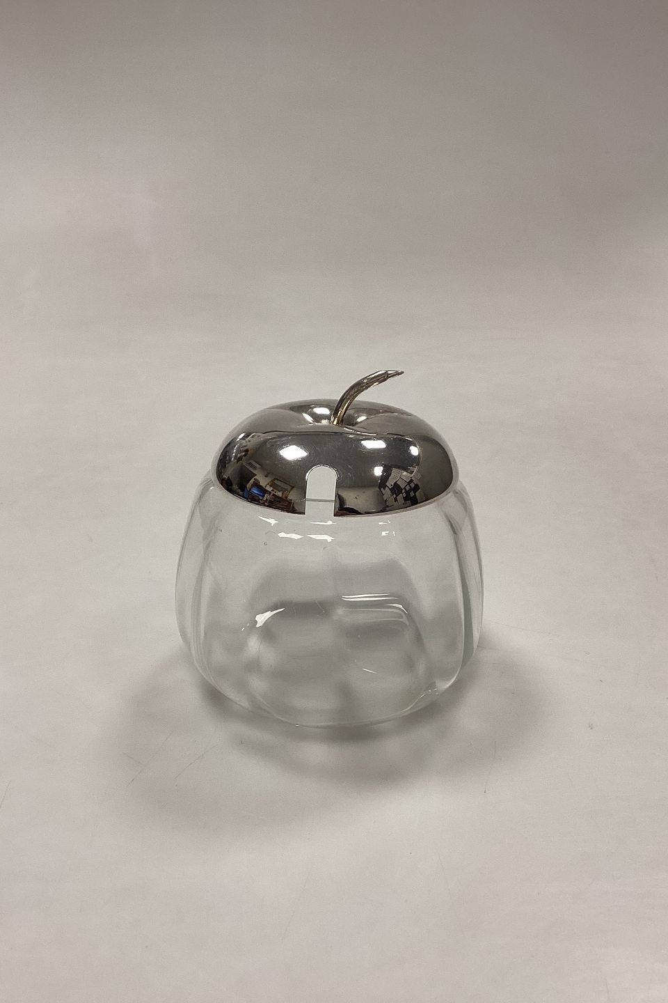 English Silver Plate/EPNS Jam Jar. The glass has optical grooves and the lid is shaped like the top of an apple.