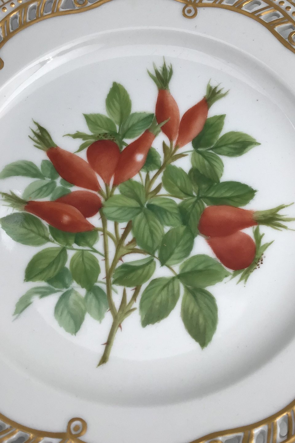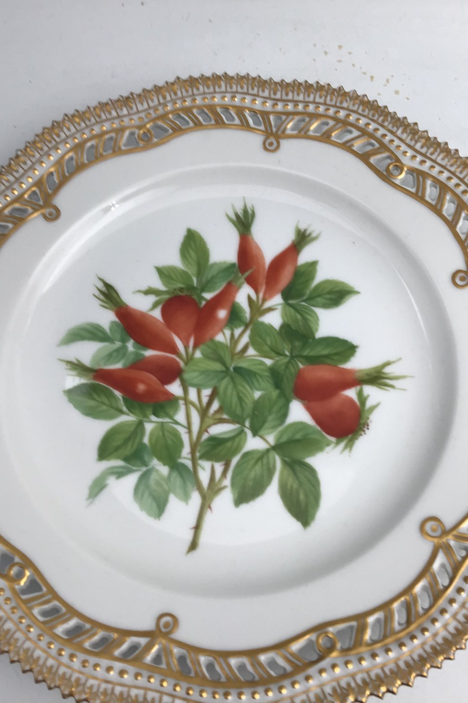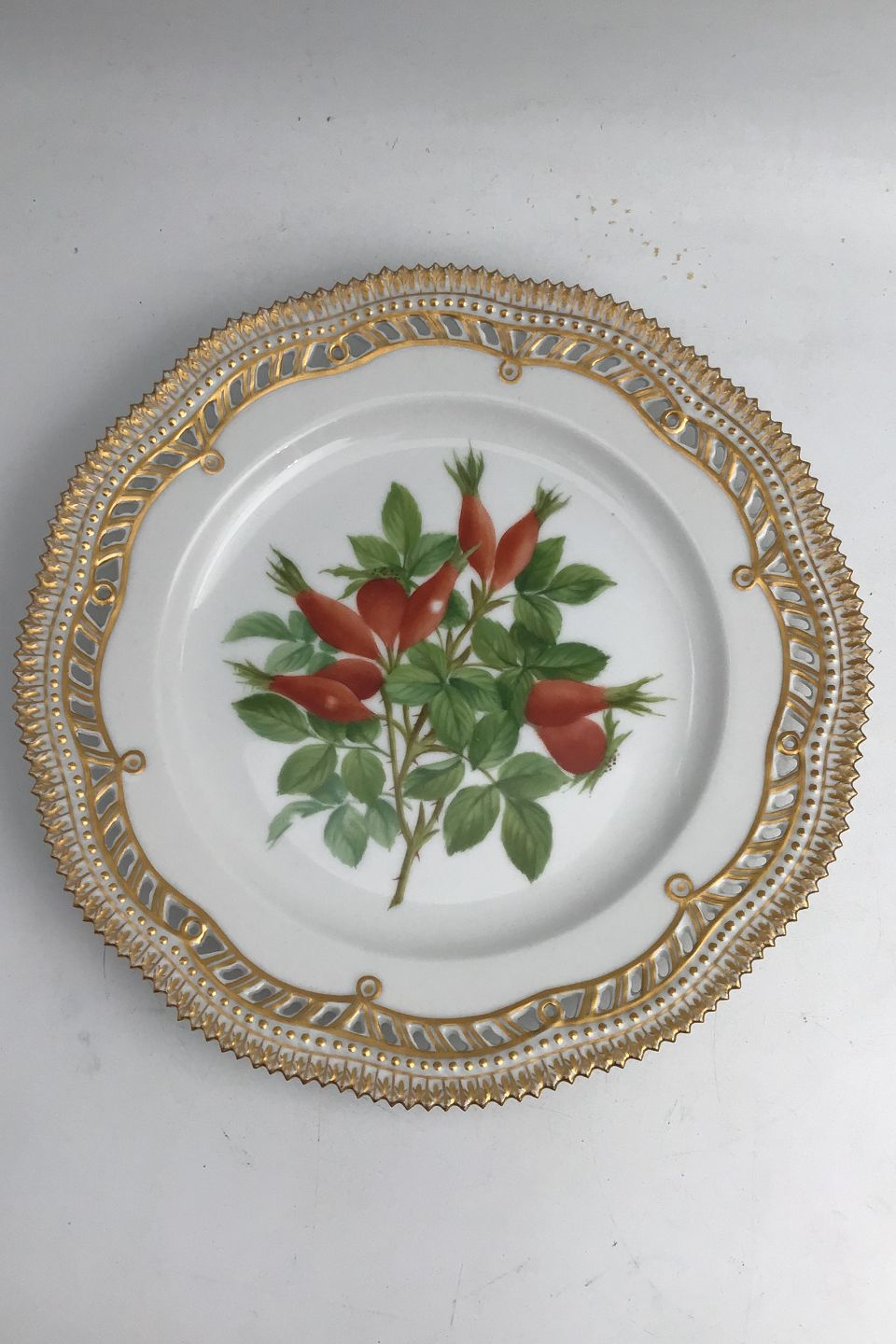 Royal Copenhagen Flora Danica Fruit Plate No. 429/3554. Measures 22.7 cm / 8.93 inch. 1st Quality. Pierced Border.