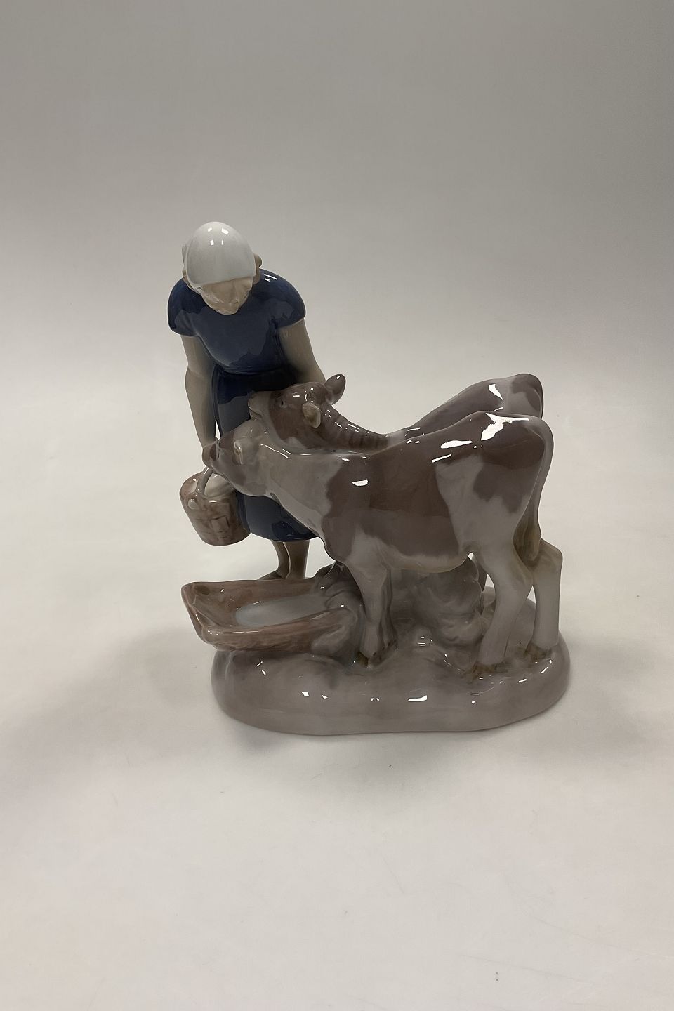 Bing and Grondahl Figurine Girl with Calfs No. 2270. Measures 21 cm / 8 17/64 in. and is in good condition. Designed by Axel Locher.