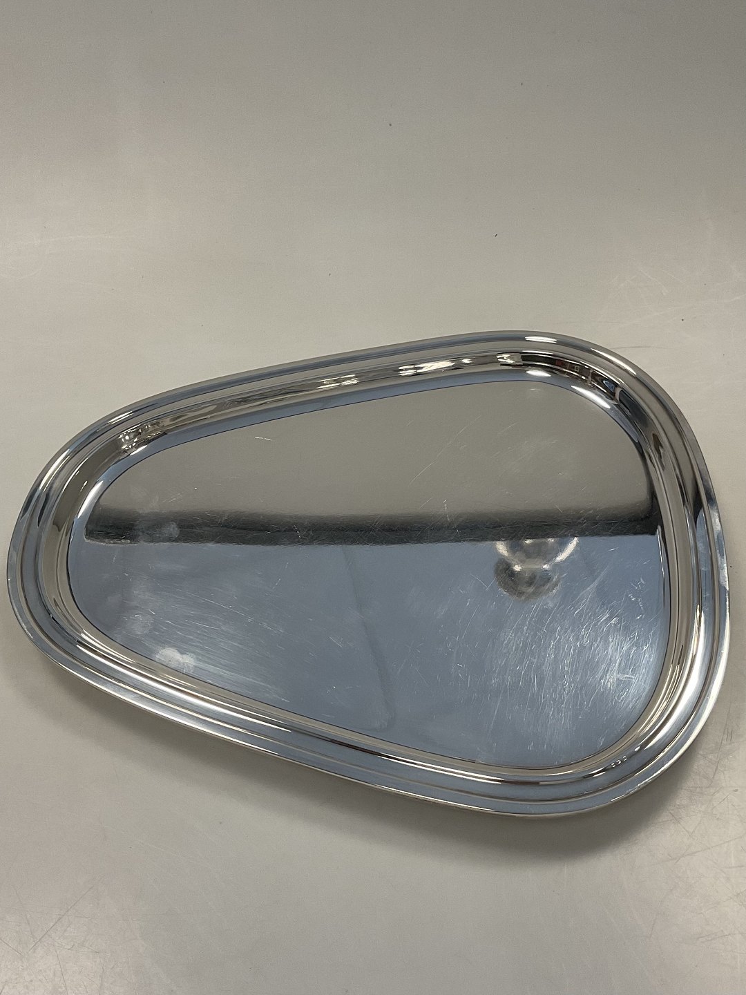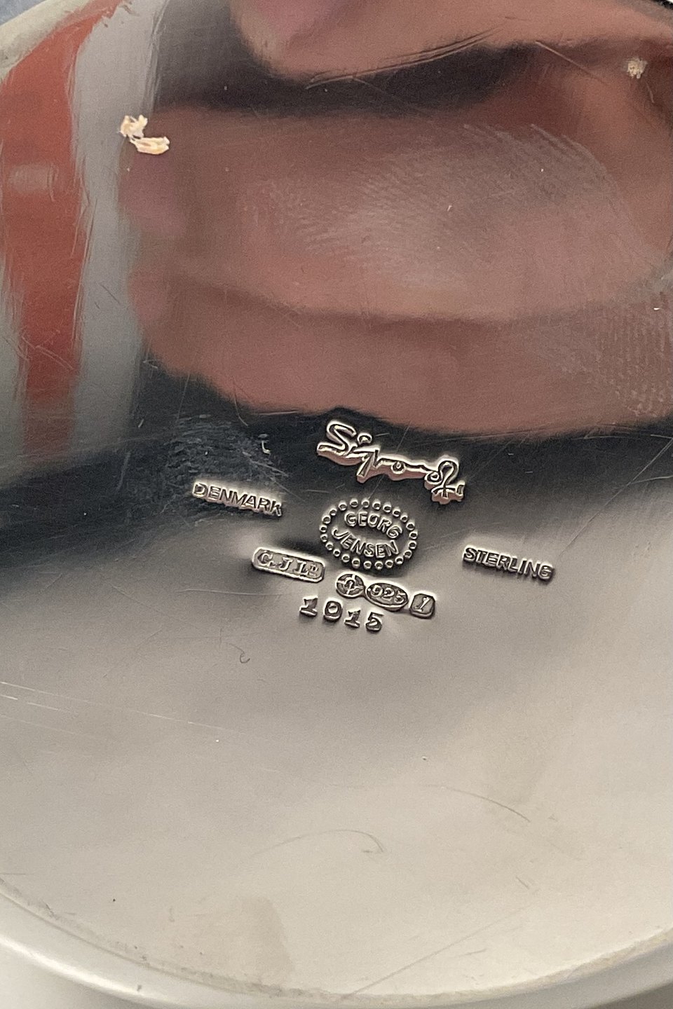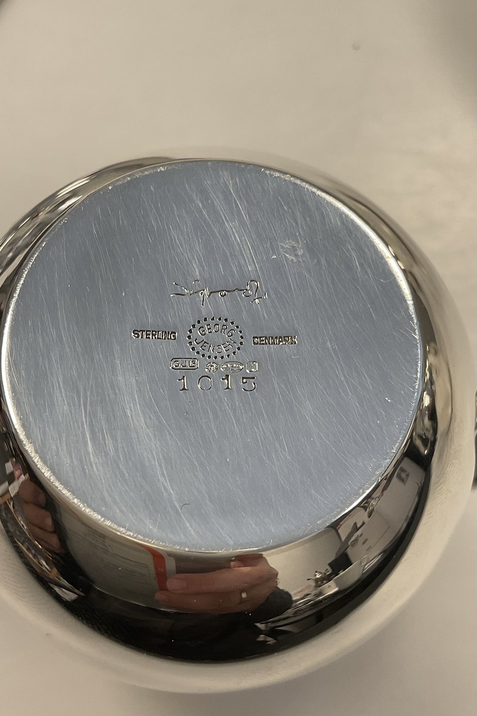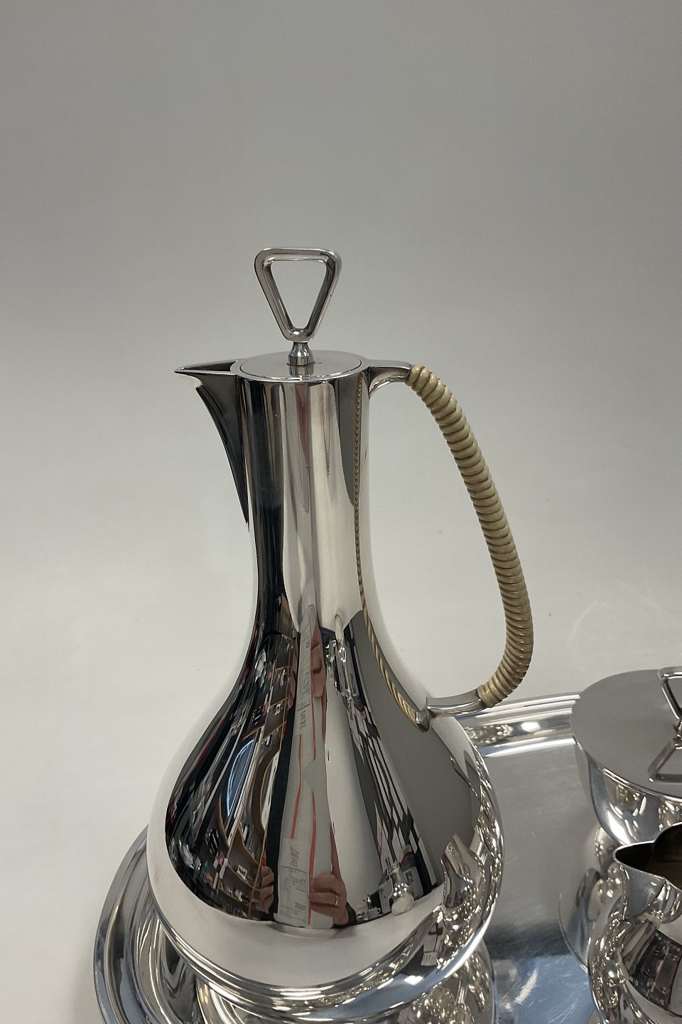 Georg Jensen Sterling Silver Coffee Set with tray No 1015 Sigvard Bernadotte Measures Coffee Pot H 23.5 cm(9 1/4 in) Sugar Bowl H 7 cm(2 3/4 in), Creamer H 7 cm(2 3/4 in), Tray 28,5cm x 24,5cm / 11.22 inch x 9.65 inch