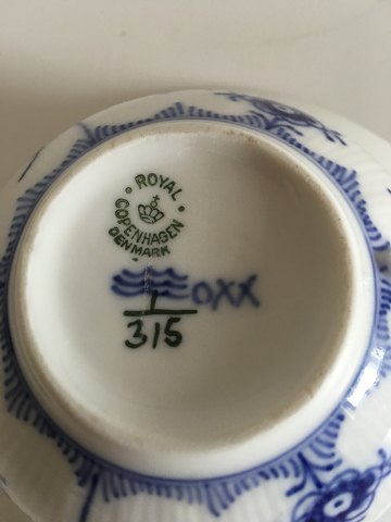Royal Copenhagen Blue Fluted Plain Tea Cup and Saucer No 315. Measures Cup: 5.5 cm / 2 11/64 in. x 10.4 cm / 4 3/32 in. dia. Saucer: 15 cm / 5 29/32 in.