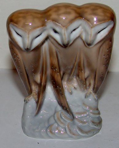 Royal Copenhagen Art Nouveau figurine of 3 owls by Christian Thomsen No 1154. Measures 9cm high and is in perfect condition. See also the inkwell with 3 owls and a mouse we have.