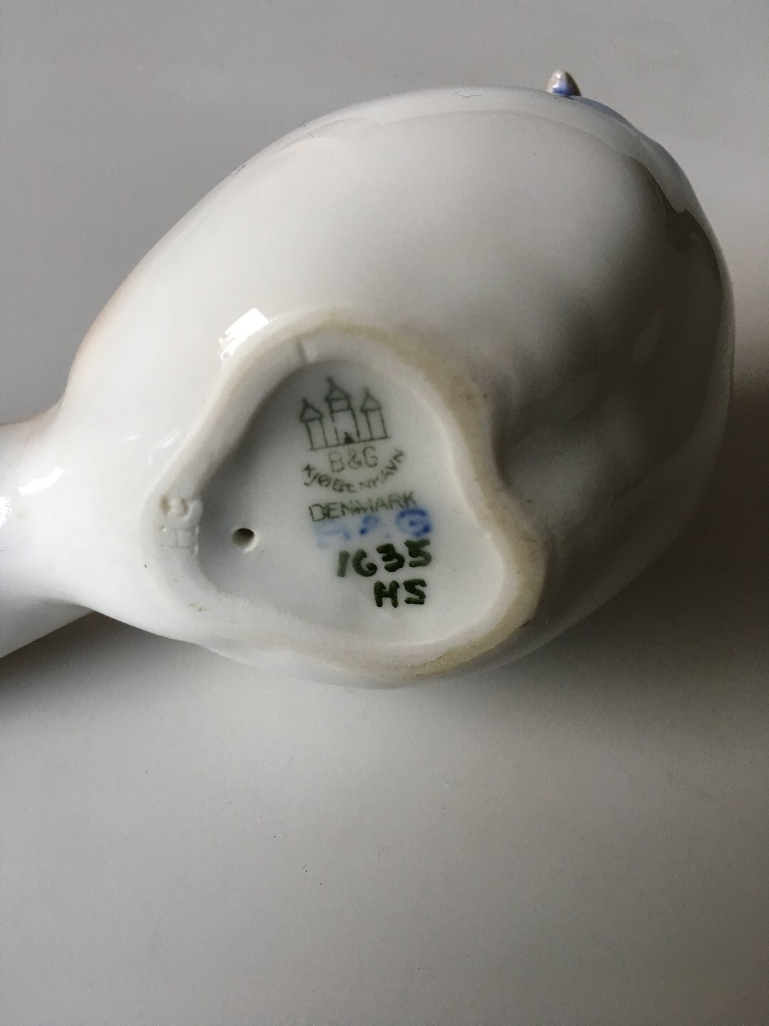 Bing and Grondahl Figurine Titmouse/Pessimist No. 1635. Measures 13 cm / 5 1/8 in. and is in good condition. Designed by Jens Peter Dahl Jensen.