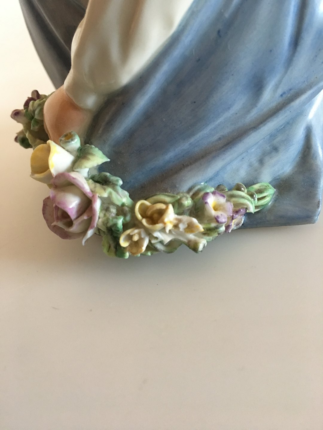 Royal Copenhagen overglaze figurine Amager Boy No 12414. Measures 15cm and has minimal chips on flowers.