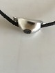 Hans Hanen Leather Necklace with Sterling Silver Pendant Shaped as a Dove / Bird. Measures 62 cm / 24 13/32 in. Pendant 3.5 cm / 1 3/8 in. Weighs 31 g / 1.15 oz.