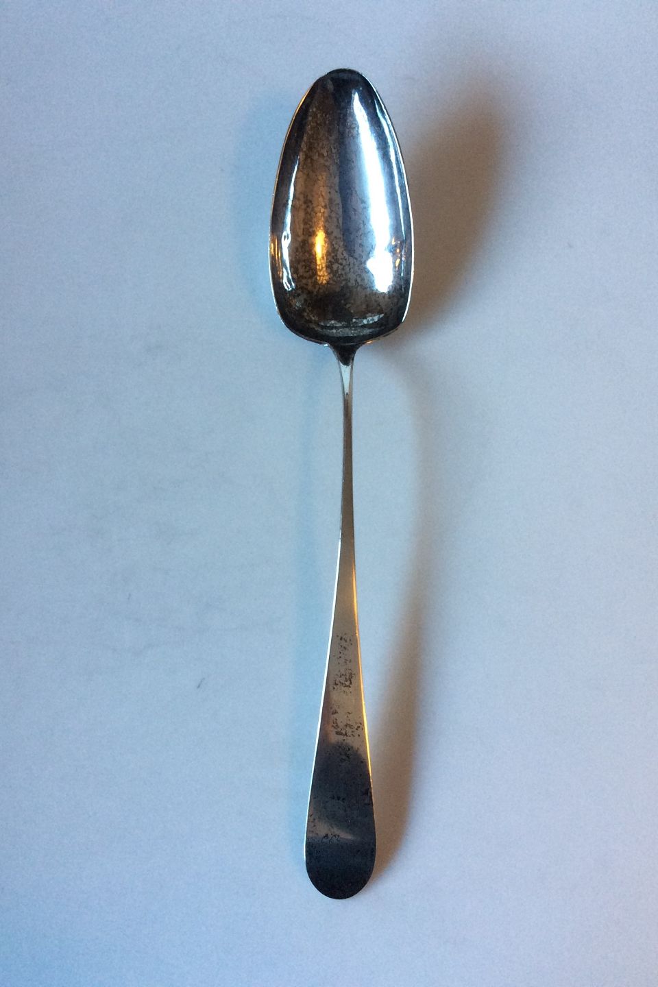 Large Serving Spoon in Silver. Marked AS. Engraved and with Dents. Measures 41 cm / 16 9/64". Vejer 141 g./ 4,95 oz.