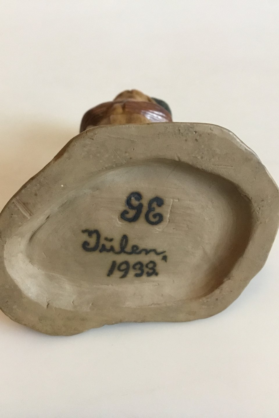 Stoneware Figurine of Boy. With Candle Holder. Signed, 1933. Measures 13.5 cm / 5 5/16 in.