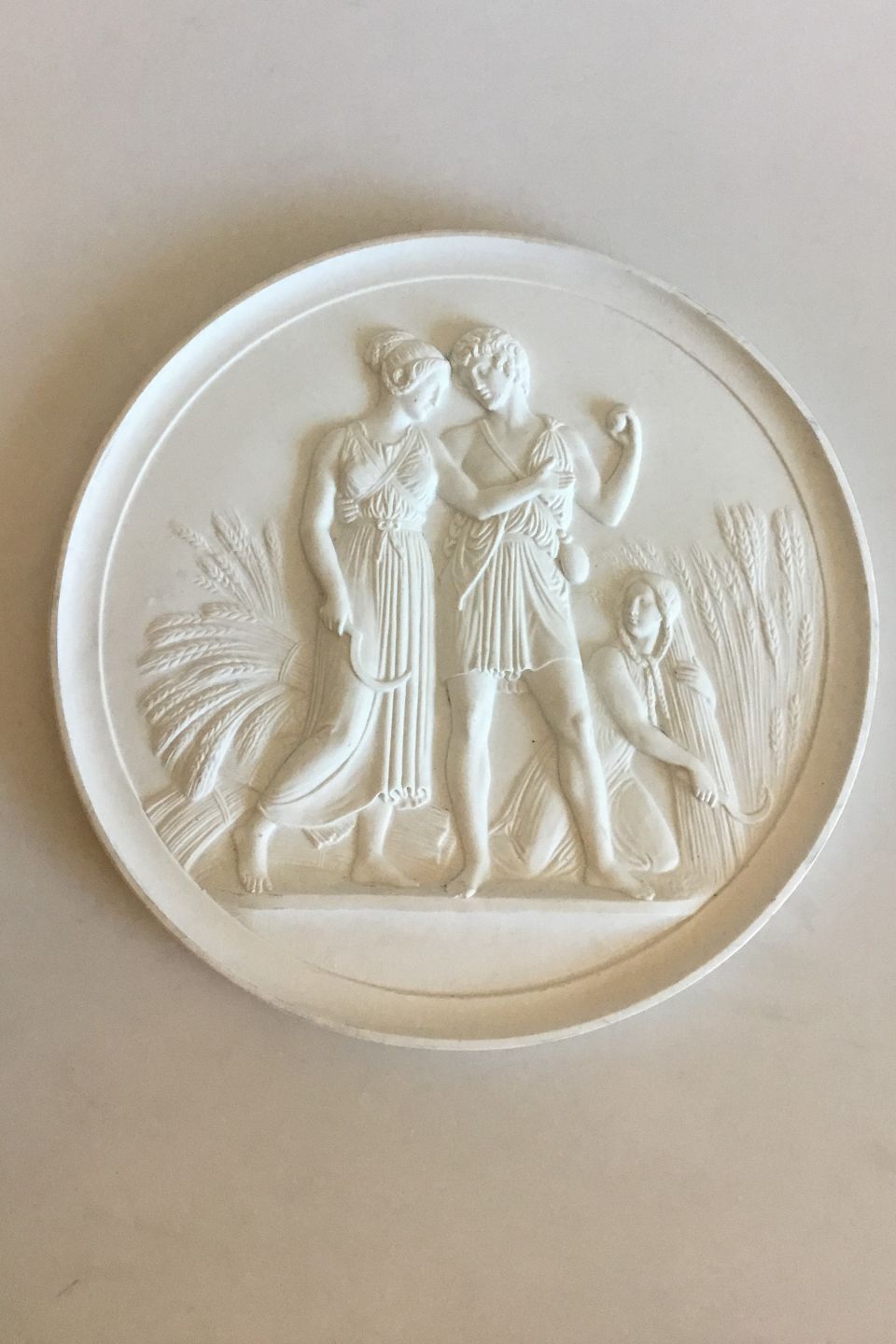Royal Copenhagen Bisque Plate Youth and Summer No 117. Copy from 1842-43 by N.G.Henriksen after Thorvaldsens original from Rom 1836. Measures 30cm / 11 4/5"