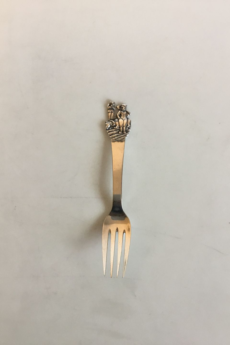 H.C. Andersen Fairy tale Child Fork in Silver. Little Claus and Big Claus. Measures 15 cm / 5 29/32 in.