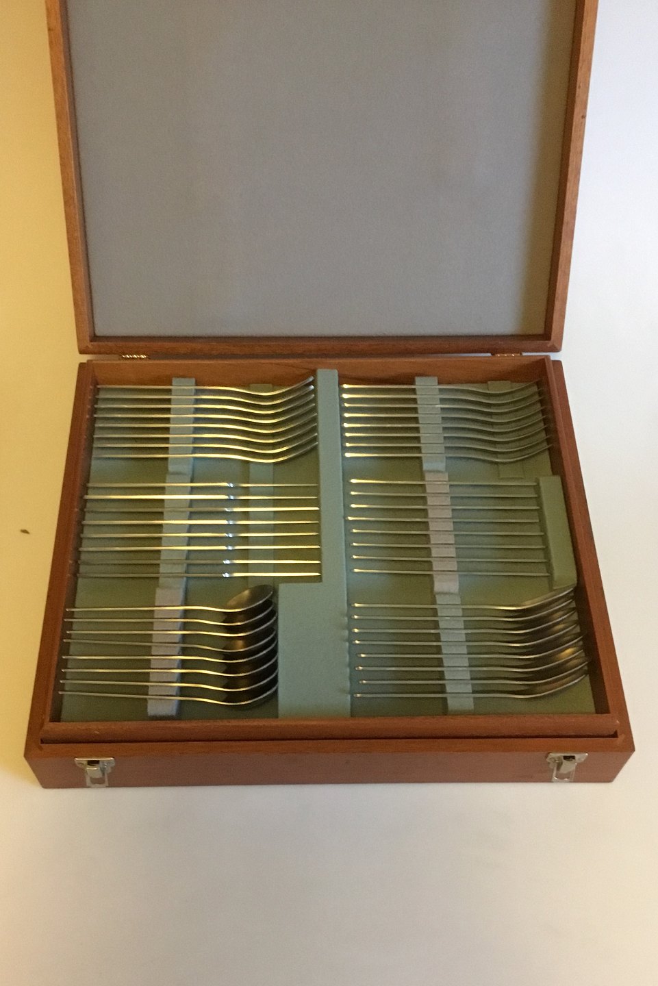 Arne Jacobsen-Anton Michelsen Stainless Steel Large Flatware Set in Wooden Box