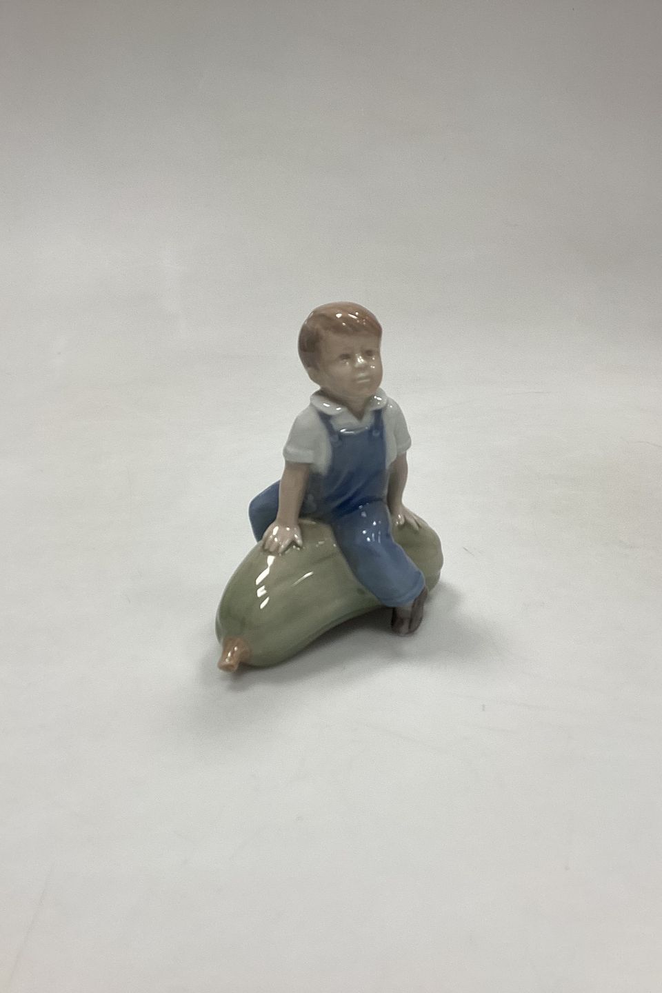 Royal Copenhagen Figurine Boy on Pumpkin No. 4539 or 153. Designed by J.M. Nissen. Measures 12 cm / 4.72 in.