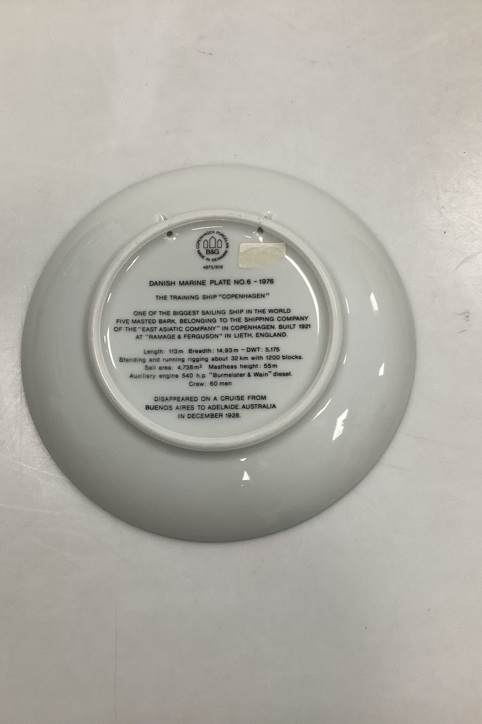 Bing and Grondahl Ship Plate from 1985