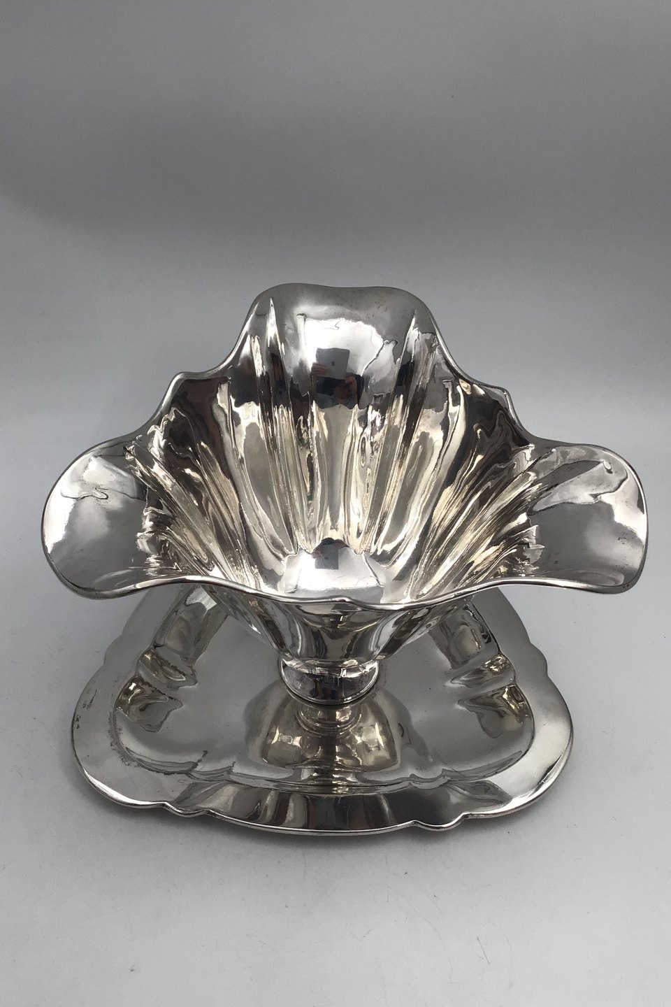 Danish Silver Triangular Sauceboat Measures 19 cm x 19 cm (7.48 inch x 7,48 inch) H 12.5 cm (4.92 inch) Weight 392.5 gr (13.85 inch)