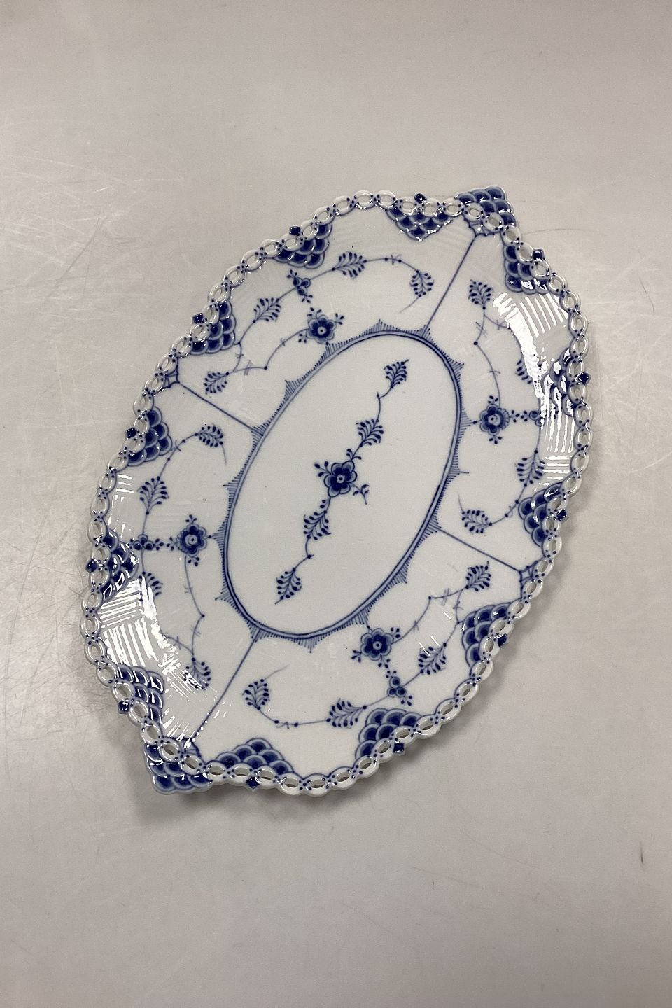 Royal Copenhagen Blue Fluted Full Lace Saucer for Fruit Basket No. 1060 / Privately painted.