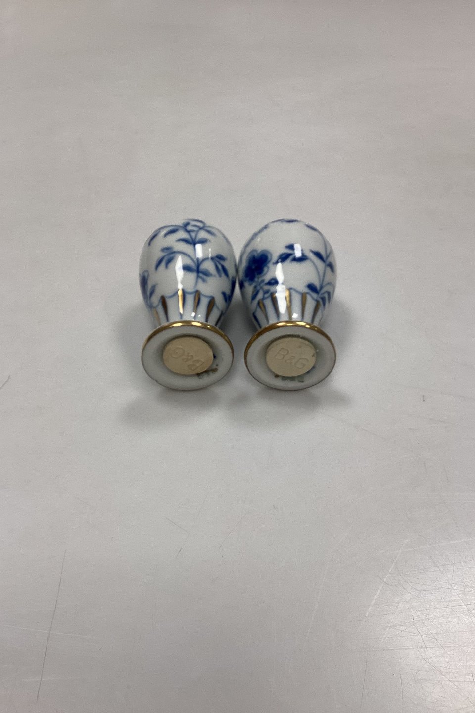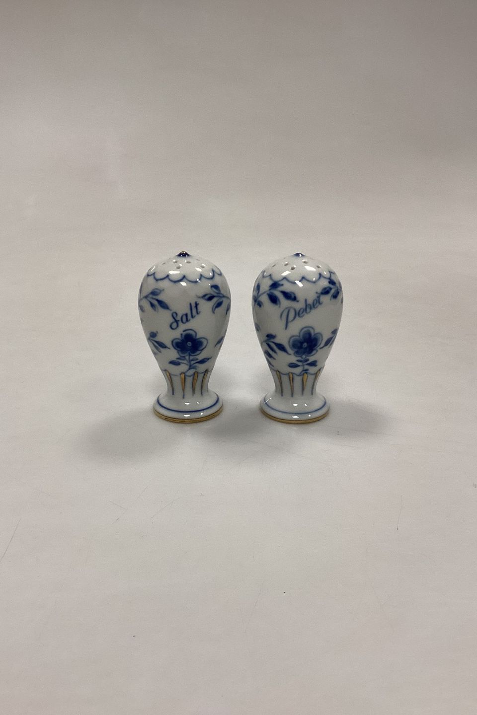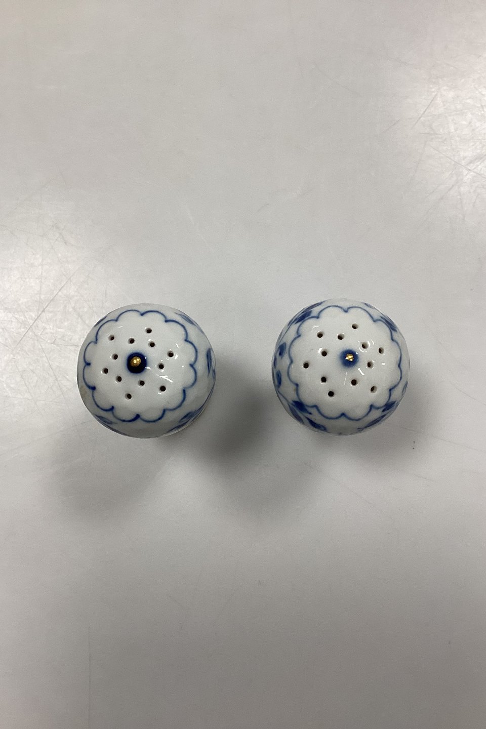 Bing and Grøndahl Butterfly, Gold Salt and Pepper Shakers No. 52A and No. 52B. Measures 7.5 cm / 2.95 in.