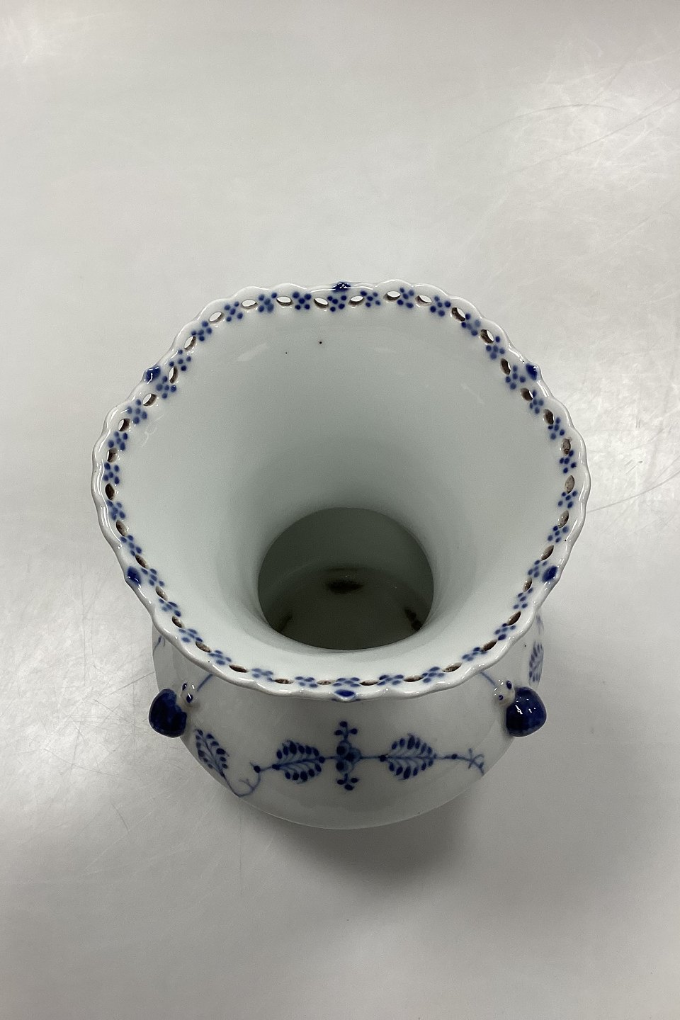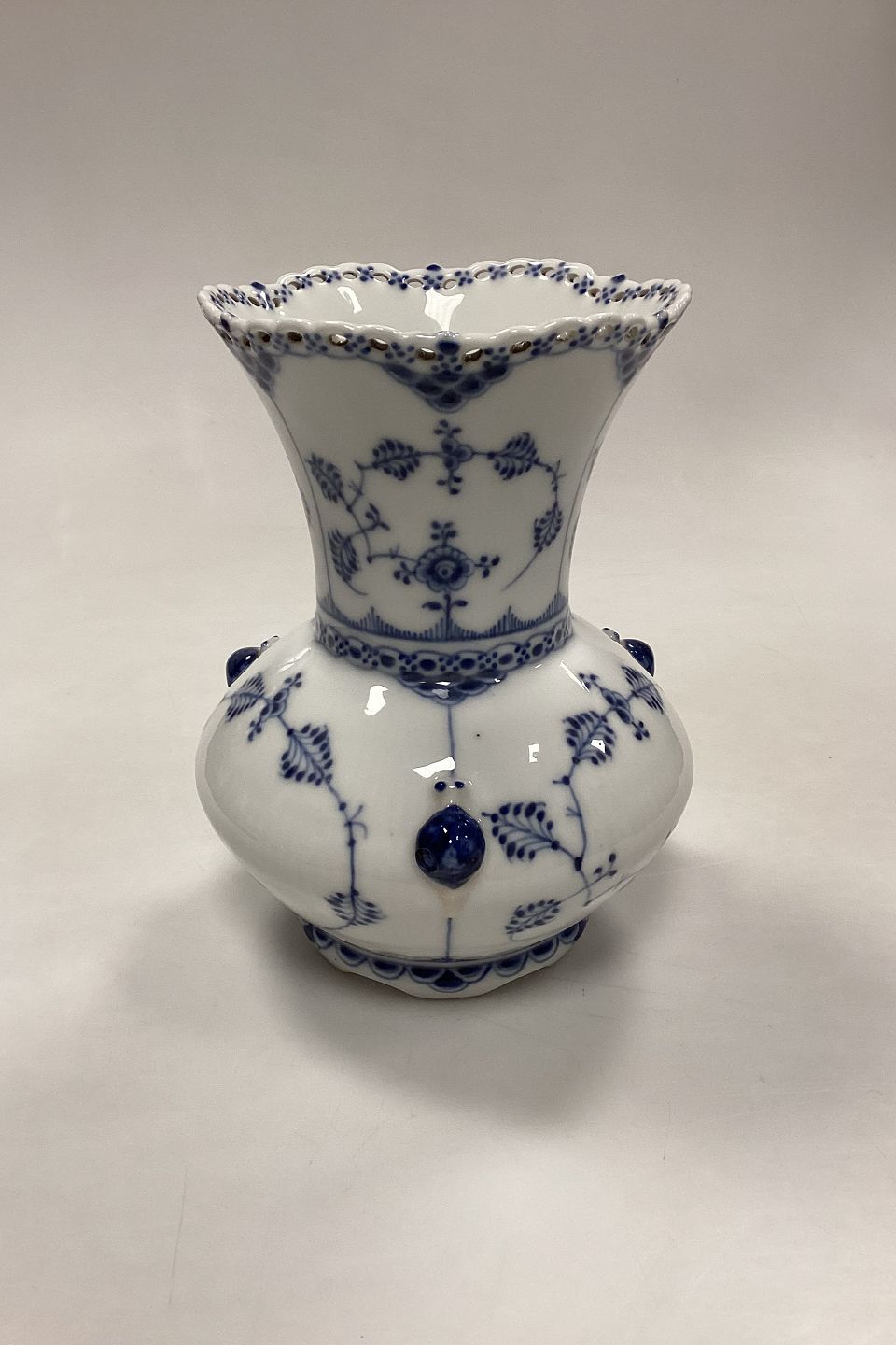 Royal Copenhagen Blue Fluted Full Lace Vase No. 1197. Small black spots in the glaze, and firing hole on the snail shell, see photos.