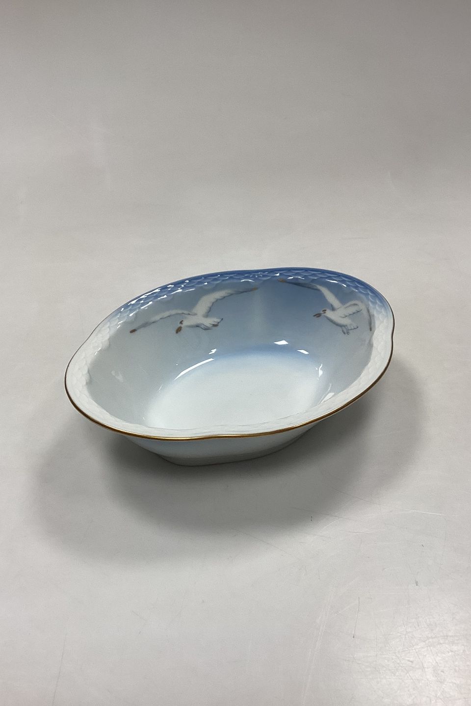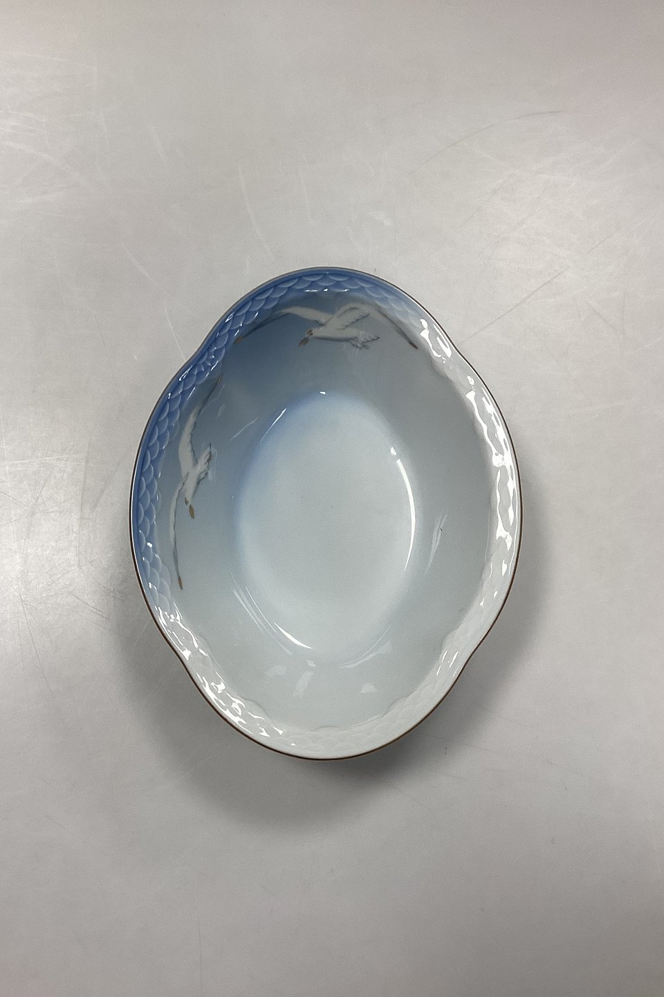 Bing and Grondahl Seagull with Gold Oval Vegetable Bowl No. 12A. Measures 22.5 cm x 17.5 cm / 8.85 in. x 6.88 in.