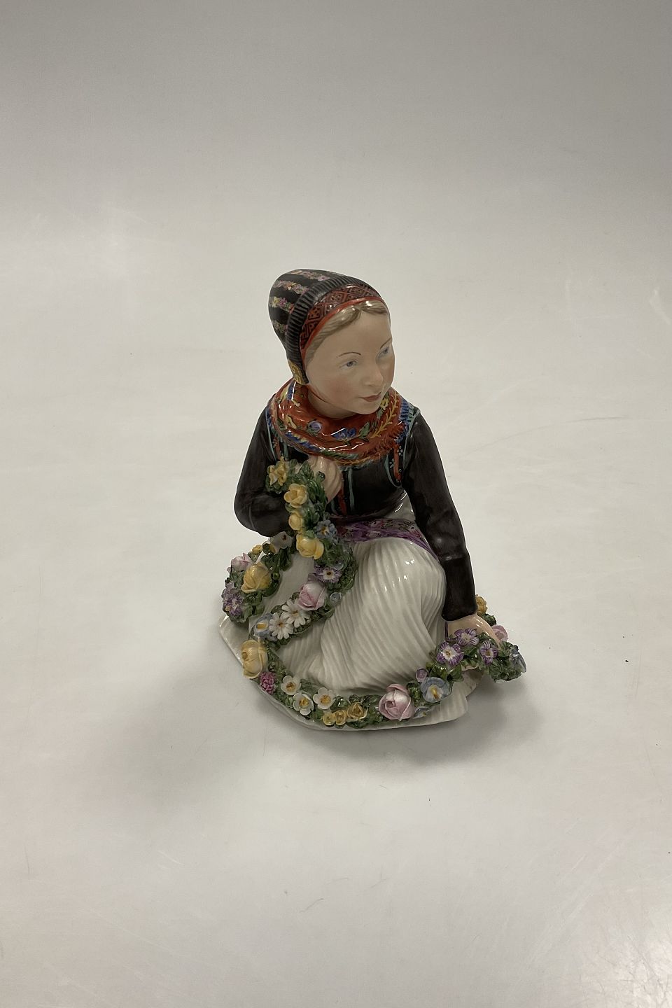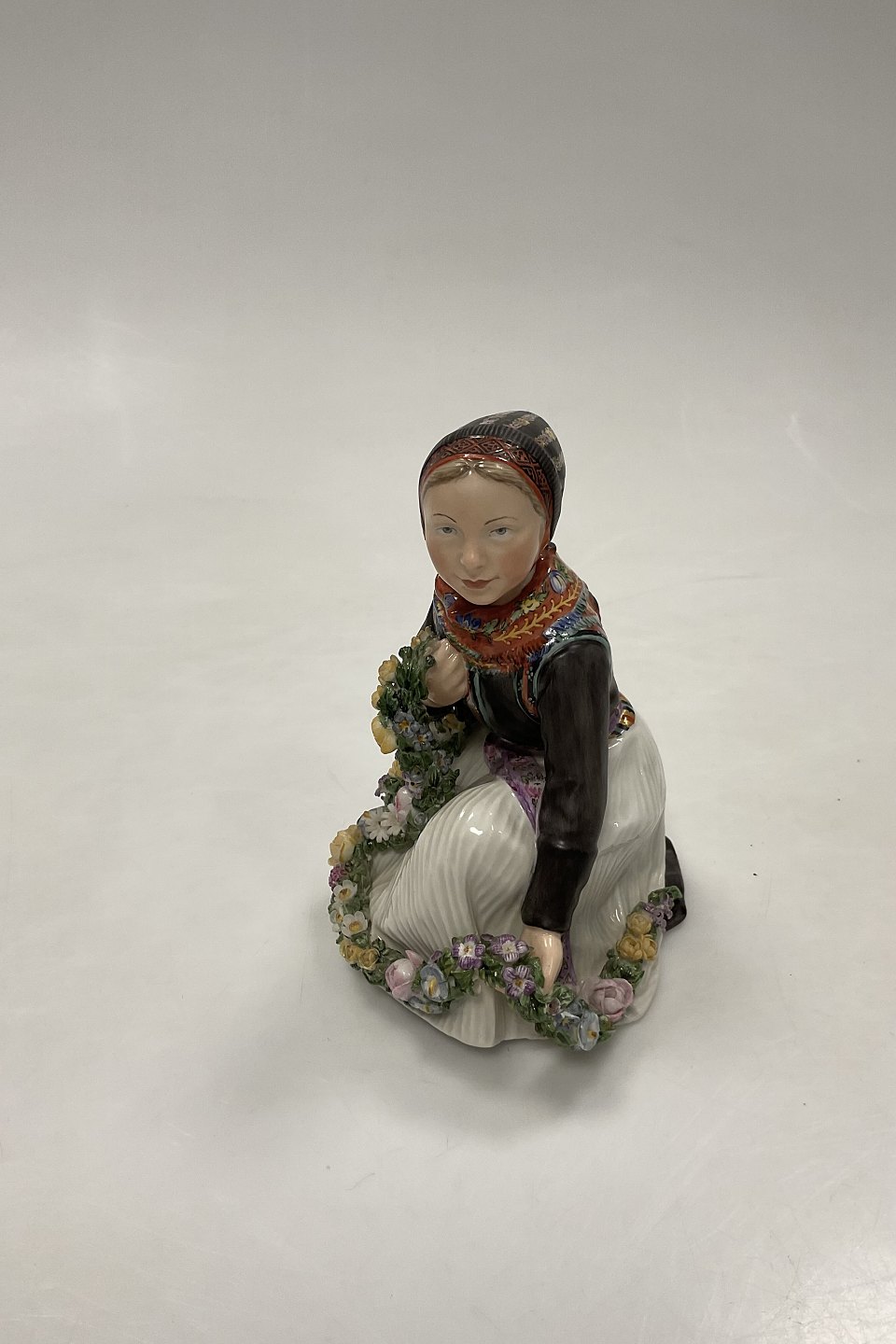 Royal Copenhagen Overglaze figurine of Amager Flower Girl No 12412.