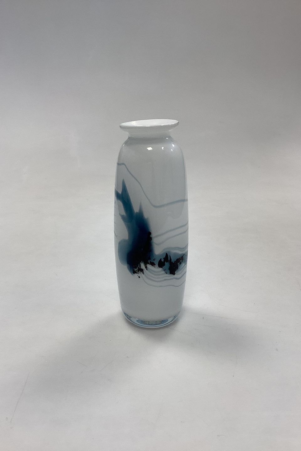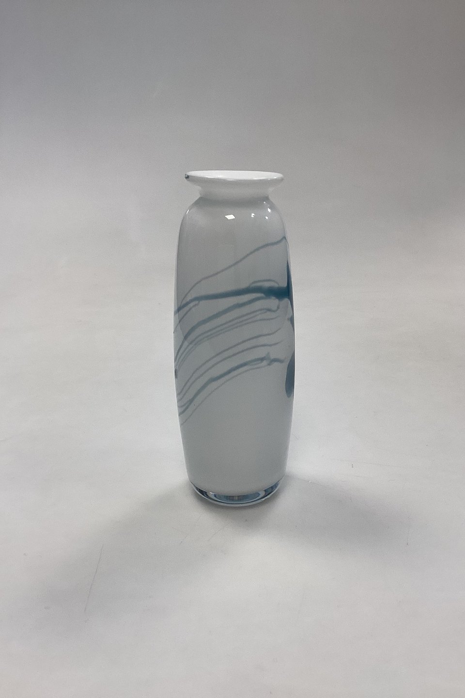 Holmegaard Atlantis Vase. White with blue decoration. Designed by Michael Bang.