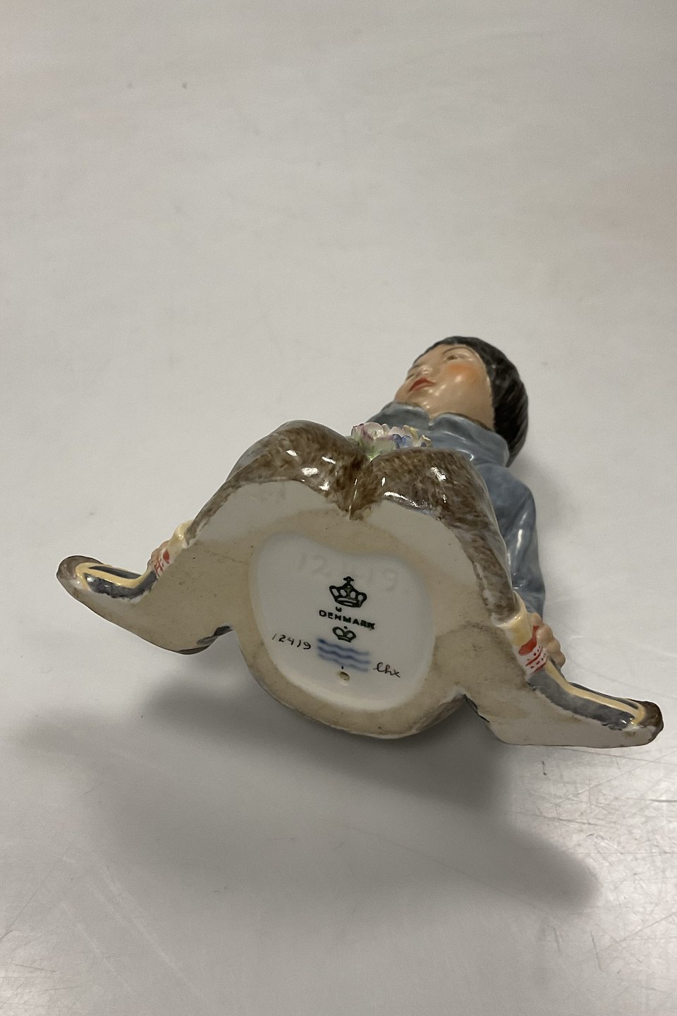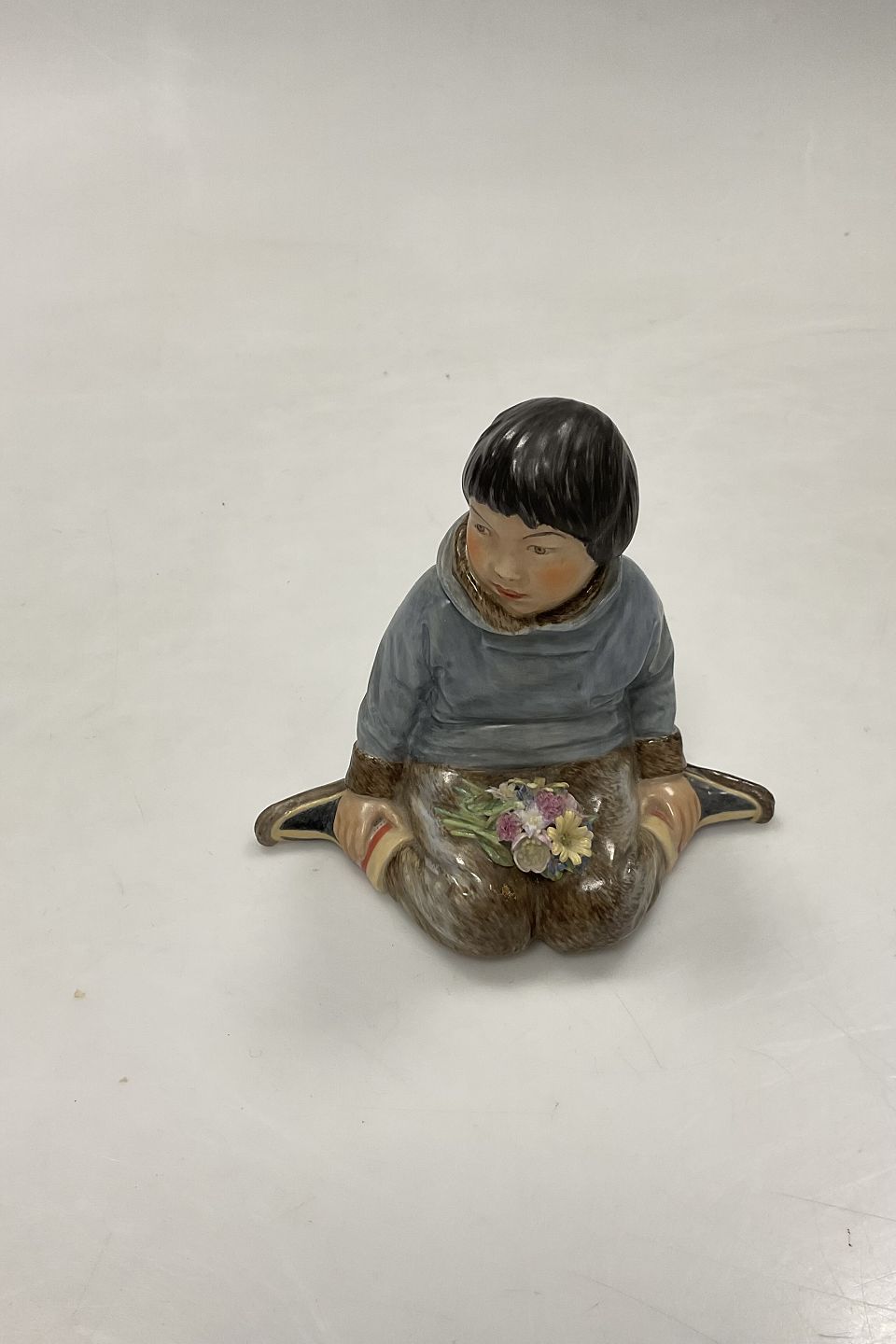 Royal Copenhagen Overglaze Figurine - Boy with Flowers from Greenland No. 12419. Designed by Carl Martin-Hansen. Perfect condition. Measures 9.5 cm / 3.74 in. 1st Quality